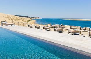 Sheltered in a neo-Basque house furnished by Philippe Starck and surrounded by vegetable gardens, this great hotel and restaurant offers the best views of the Atlantic coast of Arcachon, where the sea meats the land forming magnificent dunes.
